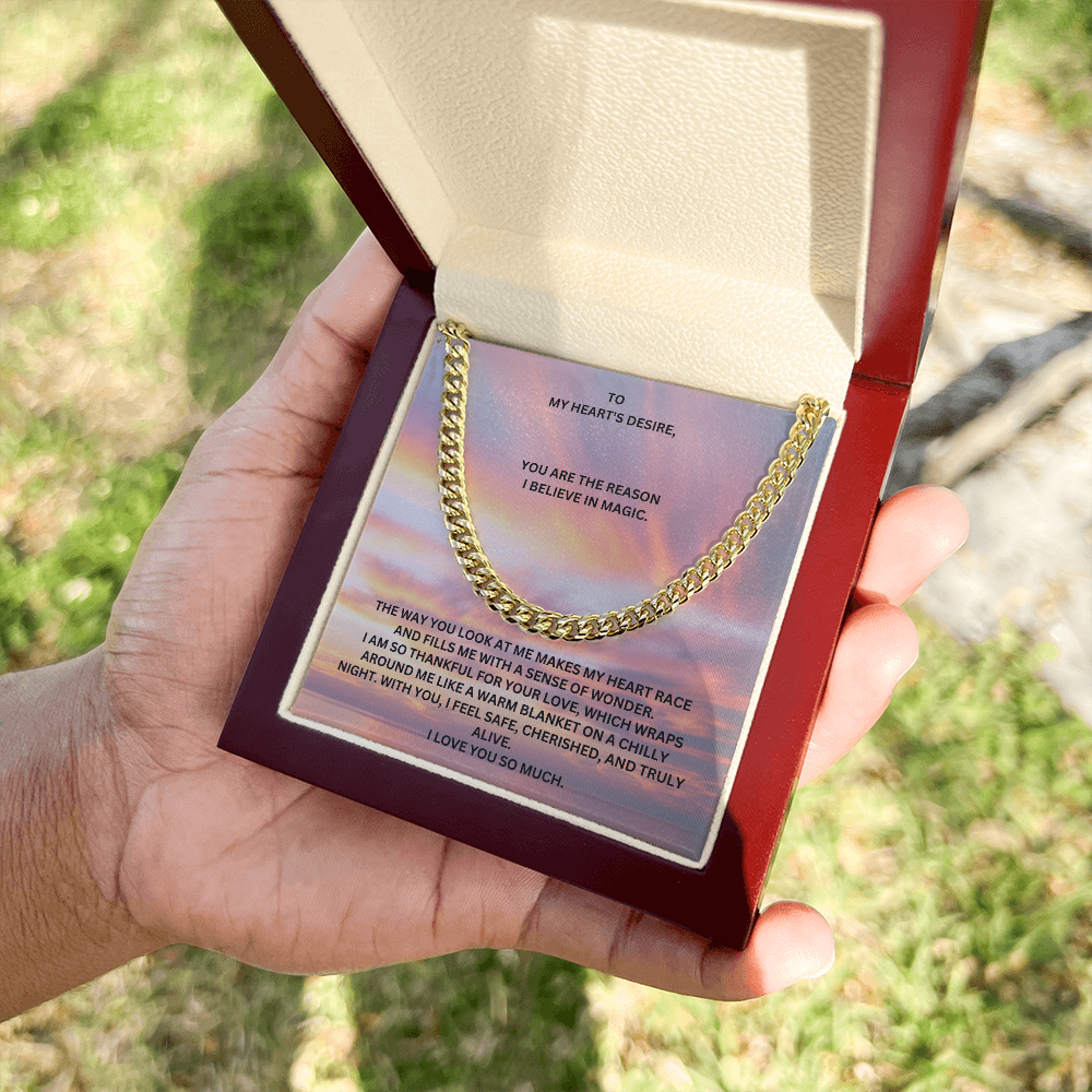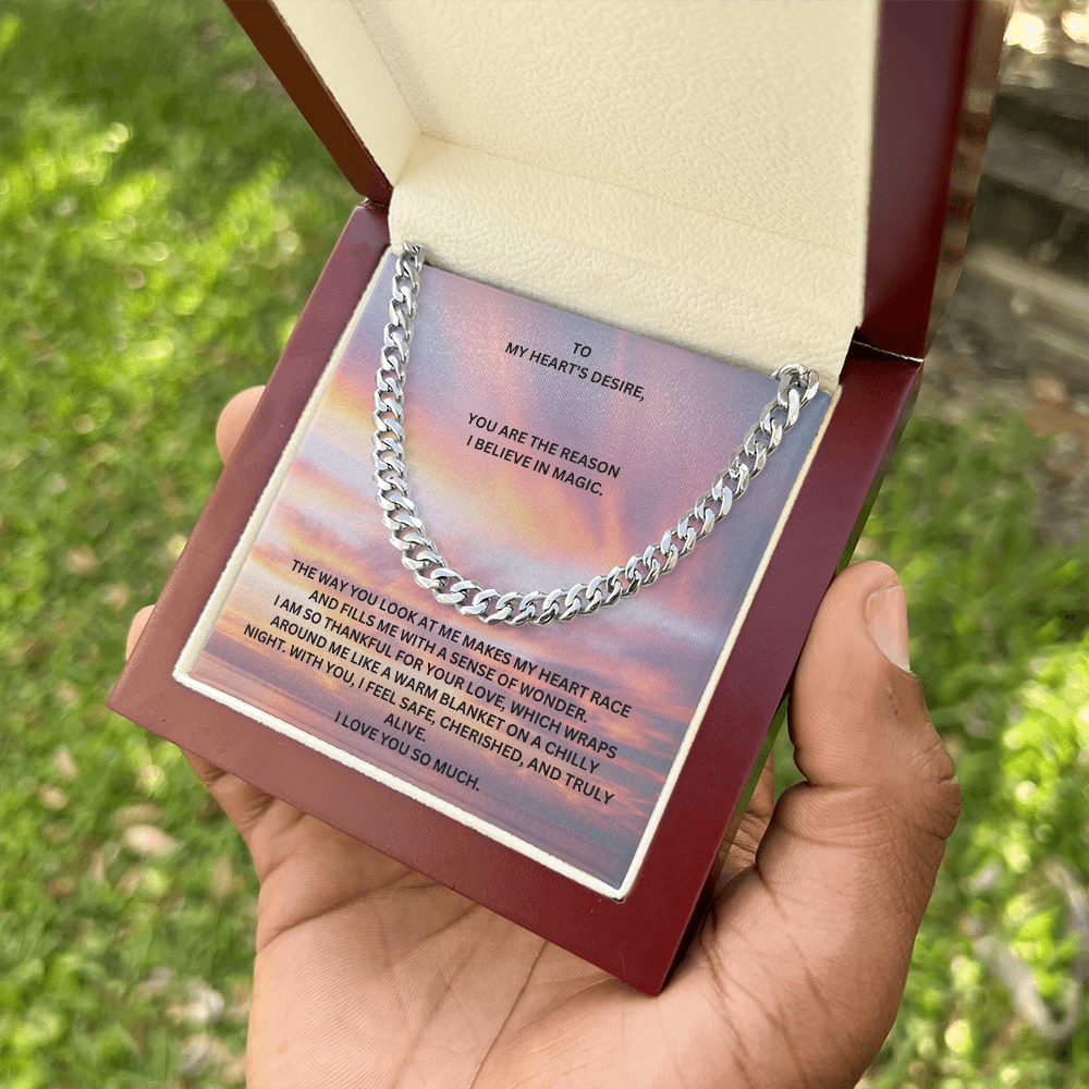 The perfect gift! Show him how much he means to you with this link chain. Let this chain remind him everytime he wears it that he is appreciated, valued and cherished. Perfect for Valentine's day, birthdays, anniversaries and just because.